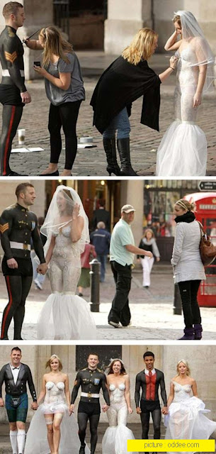 9. Apa jadinya jika seni body painting diterapkan pada pasangan pengantin?? Ini benar-benar terjadi, buktinya pasangan pengantin berikut ini menjadikan body painting sebagai gaun pengantin mereka. Hati-hati luntur sis!